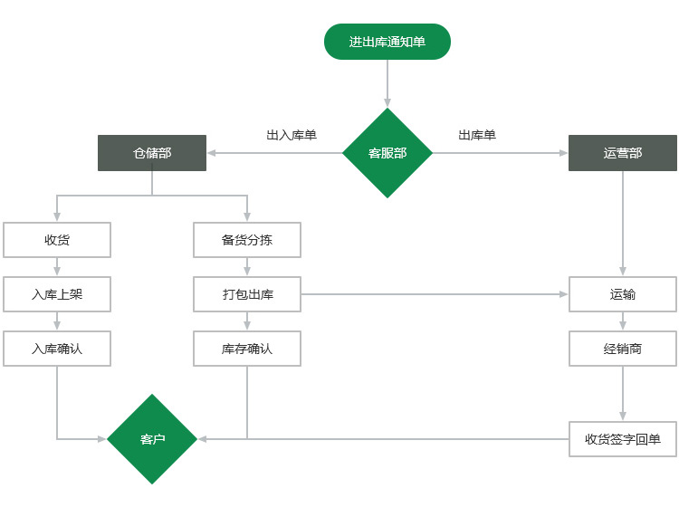入库检验、出库打包、代购修订、条码作业、代收货款、保价理赔、送货上楼等